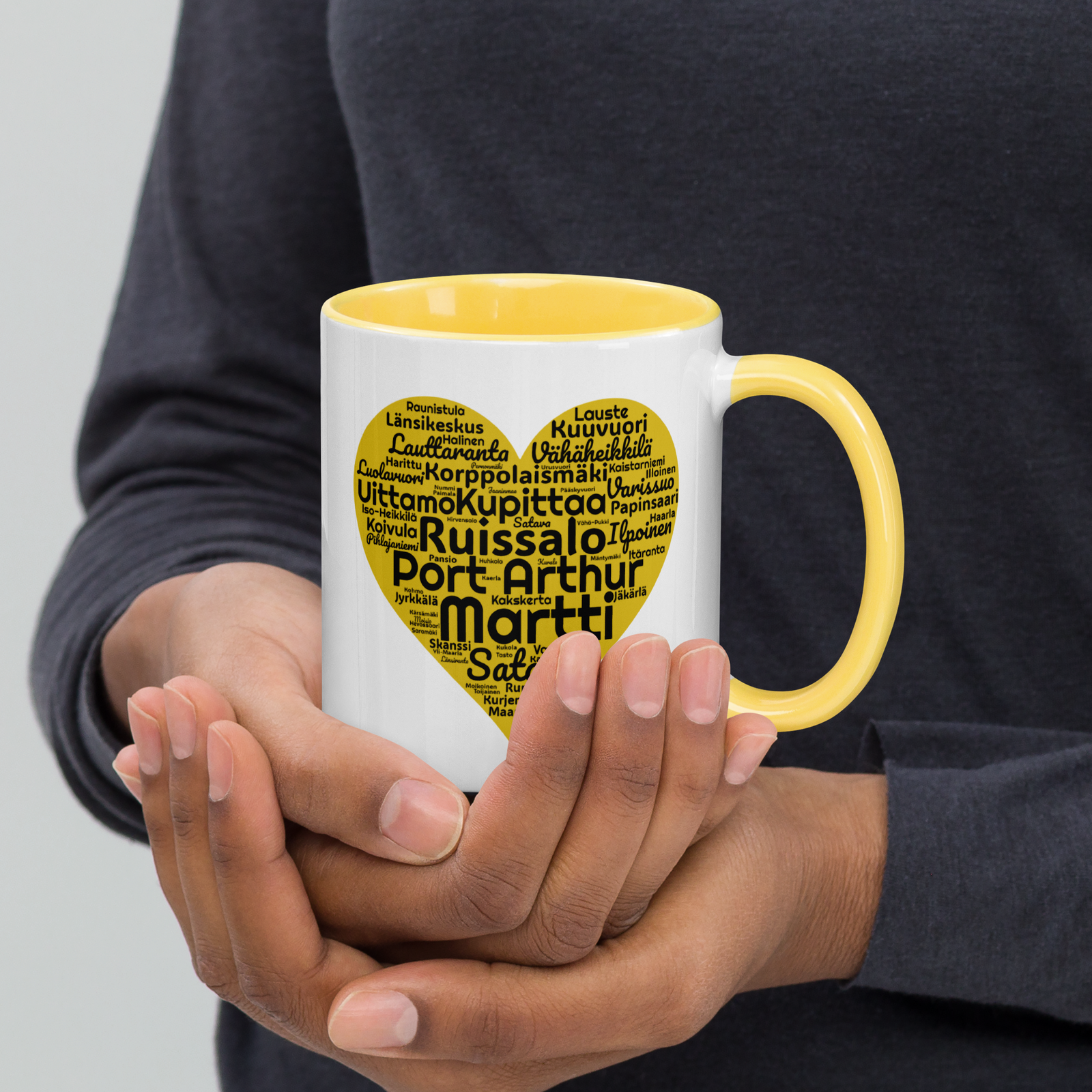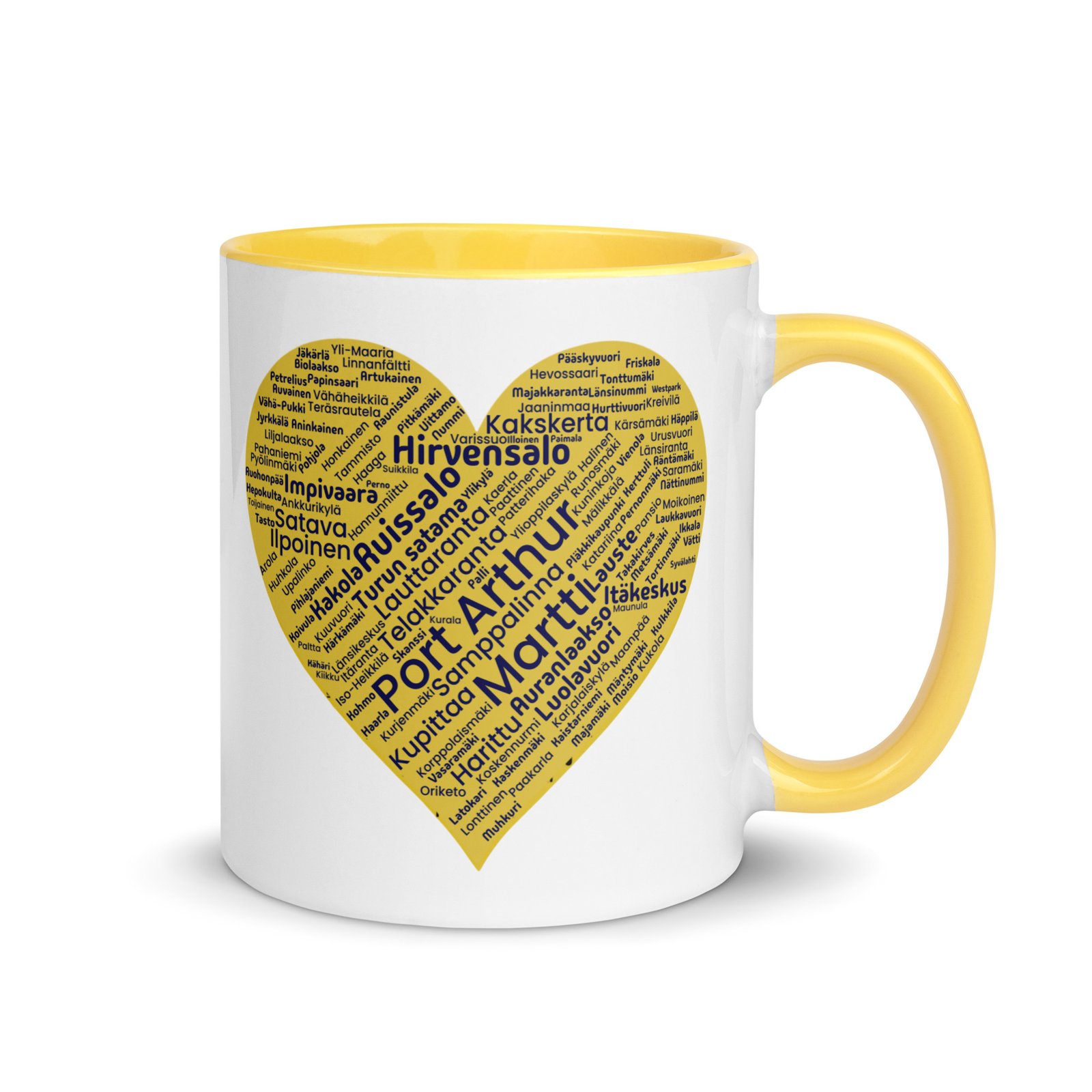 Aloita aamusi turkulaisella ylpeydellä ja sydämellä, joka sykkii Turun kaikille kaupunginosille! Tässä mukissa yhdistyvät kaikki Turun kaupunginosat kauniisti sydämen muotoon, koska me kaikki tiedämme, että turkulaisuus on parasta – kaupunginosasta riippumatta. Sydämeen mahtuu tunnetusti vain yksi ämmä, mutta Turun kaupunginosissa ämmä eli M-kirjain on edustettuna jopa 23 kertaa! Tämä muki ei pelkästään pidä kahvisi kuumana, vaan myös muistuttaa sinua siitä, kuinka laajasti ja rakkaudella turkulaisuus levittäytyy jokaiseen nurkkaan.