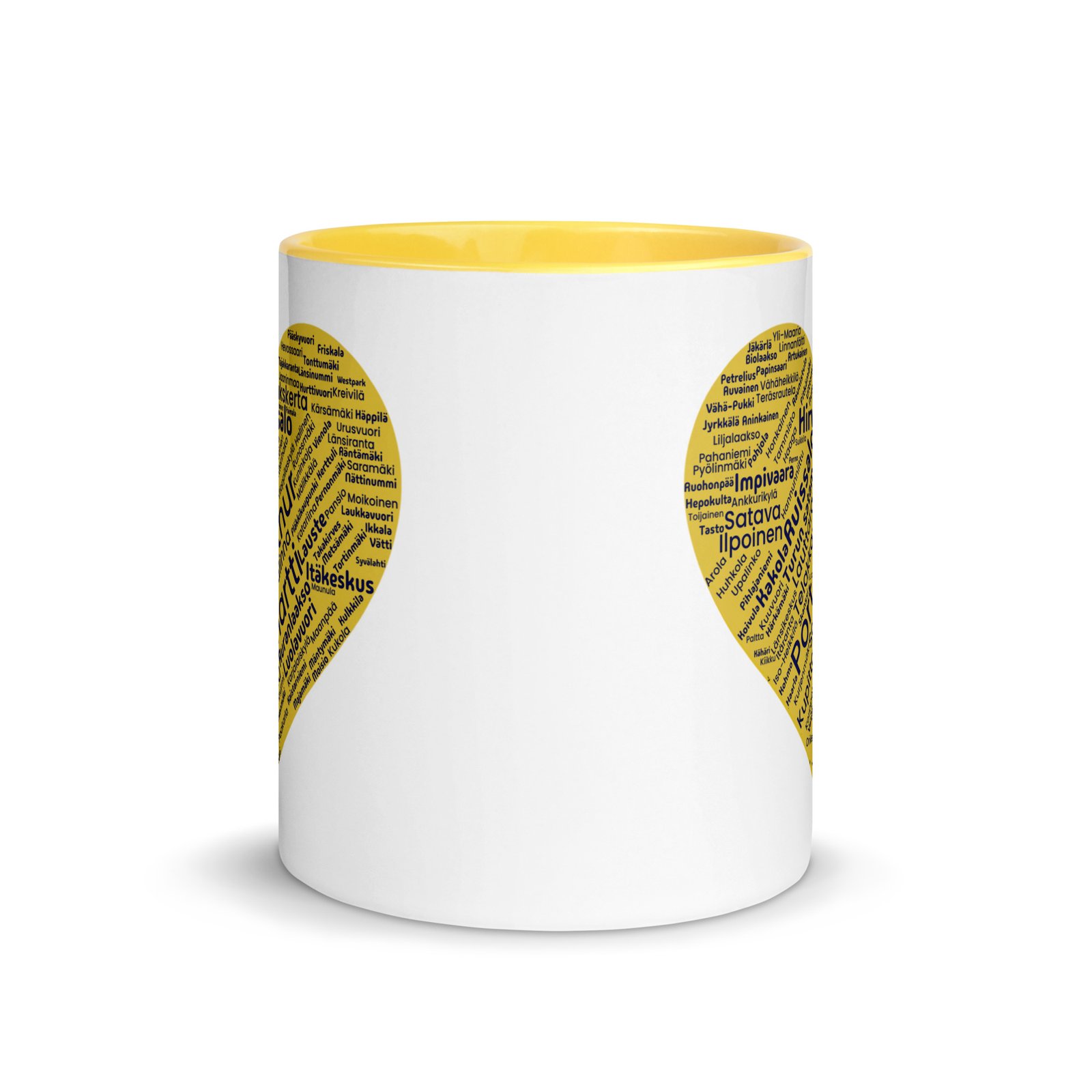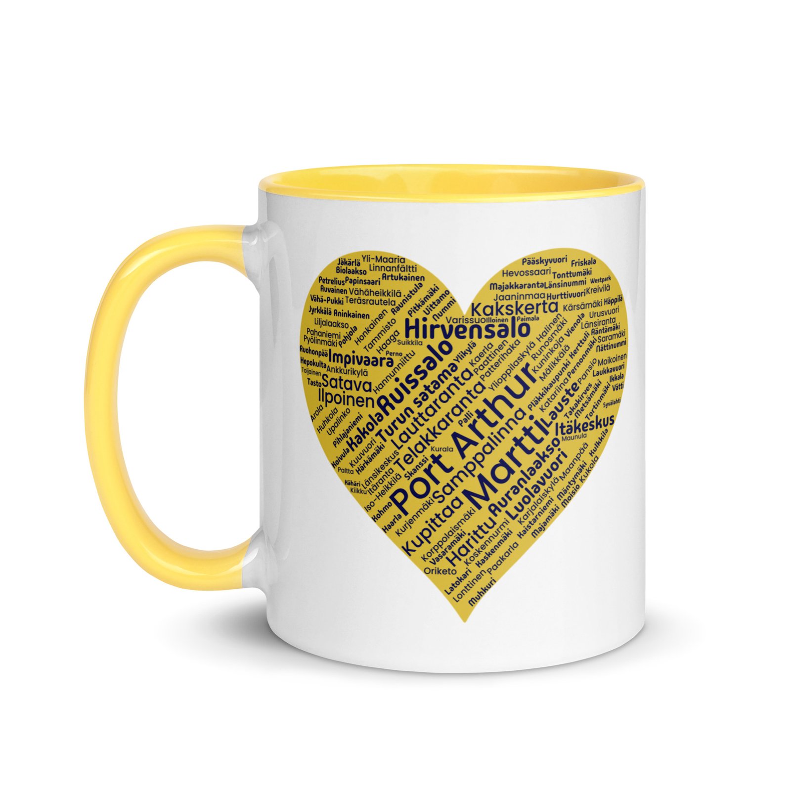 - Keltainen reuna, kahva ja sisus: Piristävä väri, joka muistuttaa kesäisestä auringonpaisteesta Aurajoen rannalla.