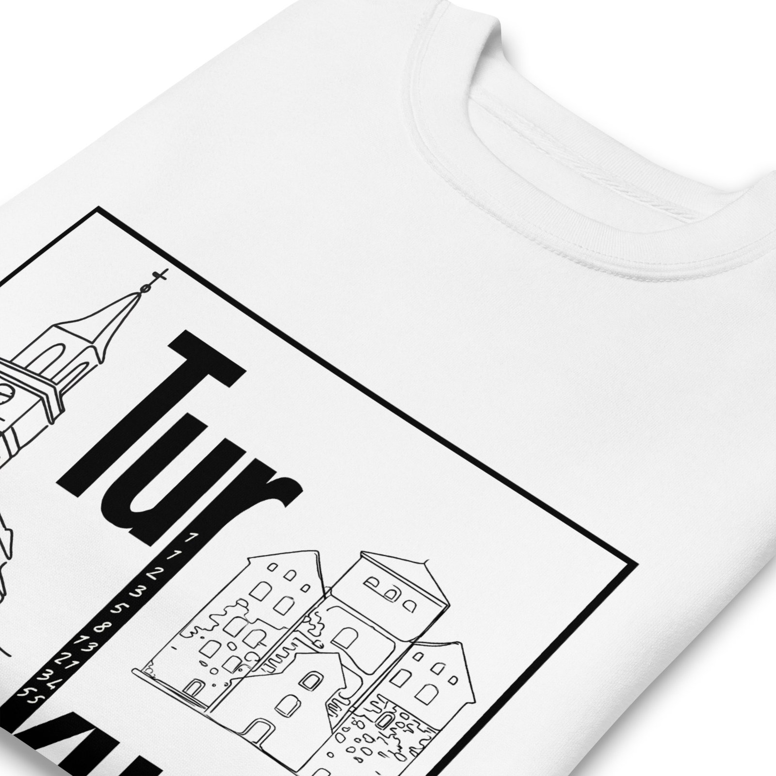 Unisex College-paita – Turun kiertotaulu on juuri se vaate, joka yhdistää matemaattisen nerokkuuden, urbaanin katutyylin ja turkulaisen siluetin sulavasti yhteen neliöön. Etupuolella komeilee kaksirivinen teksti: “Tur” ja “ku” – mutta eipä siinä kaikki. Kirjainten r ja k väliin on upotettu Fibonazzin piipunumerot, elegantisti ja täsmällisesti. Minimalismi, jossa on sisältöä enemmän kuin Föri-podcastissa.